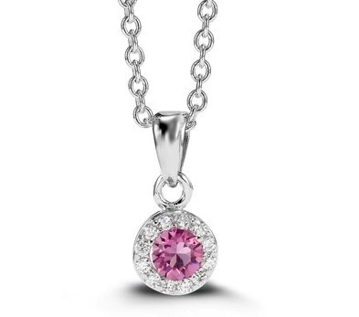 Simulated Birthstone & Cubic Zirconia Halo Pendant W/18″ Chain Sterling Silver/OCT