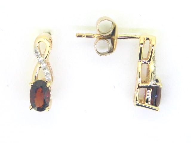 Genuine Garnet 5×3 & .05TCW Diamond Accented Infinity Design Stud Earrings 10KT *FINAL SALE*