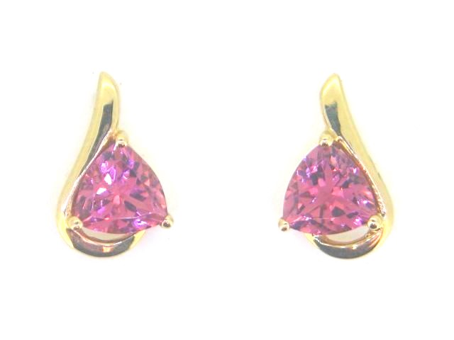Genuine Pink Tourmaline Trillion 1.6TCW/2 Stud Earrings 14KT **CLEARANCE-FINAL SALE**