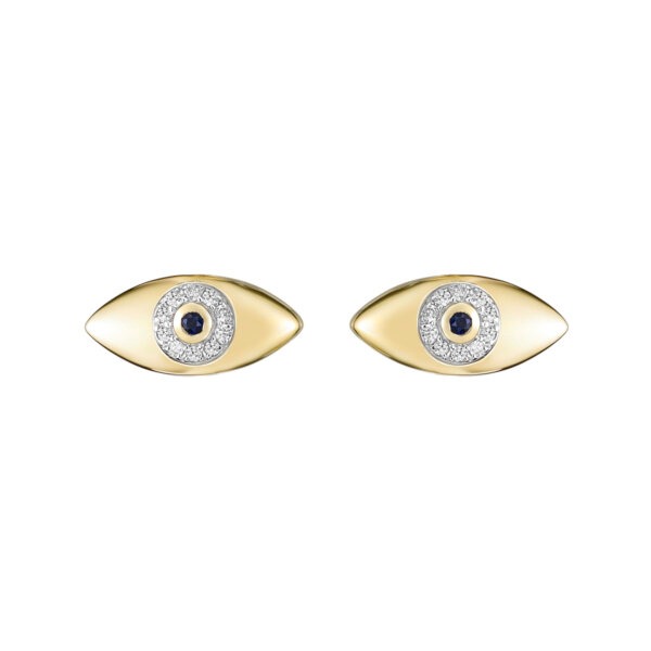 Genuine Sapphire & .08TCW Diamonds Evil Eye Stud Earrings 10KT/12MM *CLEARANCE-FINAL SALE* quantity