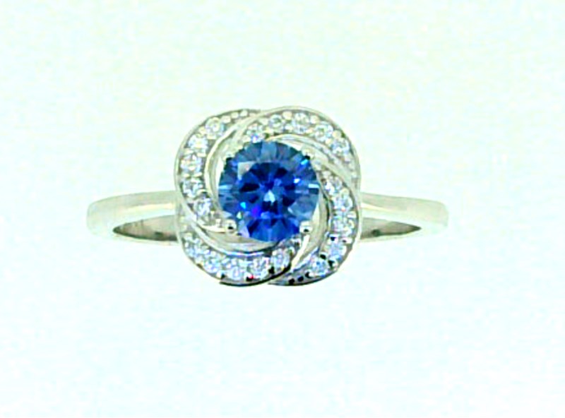 5MM Sim. Birthstone & Cubic Zirconia Swirl Ladies Ring Sterling Silver