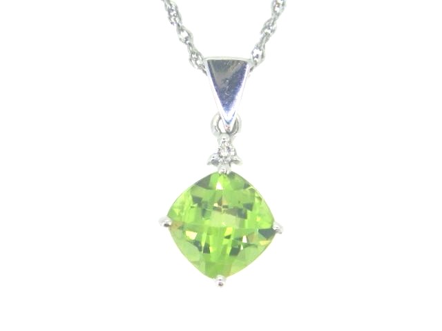 Genuine Peridot Cushion 7MM Checkerboard Cut & .02CT Diamond Pendant with Chain 14KT WG **CLEARANCE-FINAL SALE** quantity