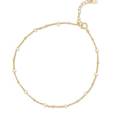 Fresh Water Pearl Station Satellite Link Adjustable Anklet 9-10″ Gold Plated Sterling Silver
