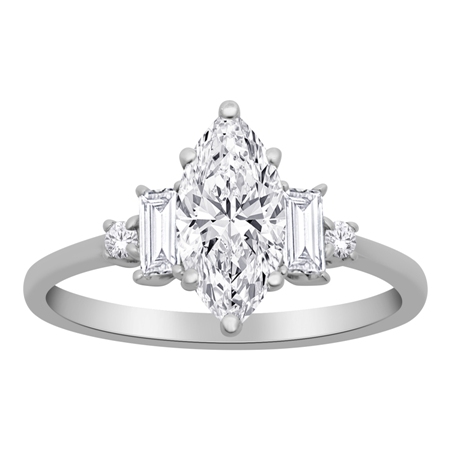 1.00CT VS2 E-F LAB Marquise Diamond & .15tcw VS2 EF Baguette & Round LAB Dia s Ladies Engagement Ring 14KT WG Cert# LGR47523