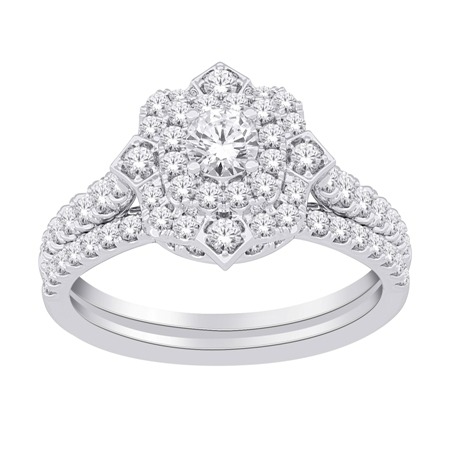 1.0tcw Diamond Flower Design Ladies 2 Pce Engagement Set 14KT WG