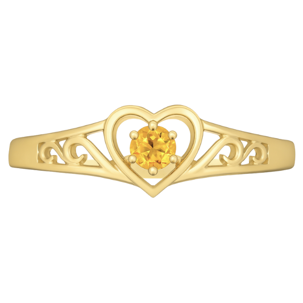 Heart Shaped Filigree Ring with 2.5mm Round Gen. Citirine 10KT