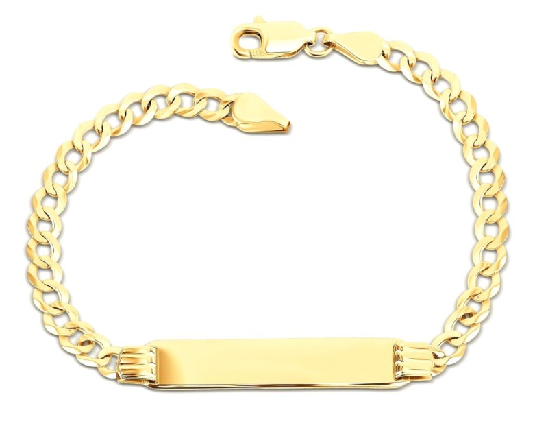 ID Plate 7 x 32mm with Gentle Curb Link 8.5″ Bracelet 10KT/5MM *Engravable