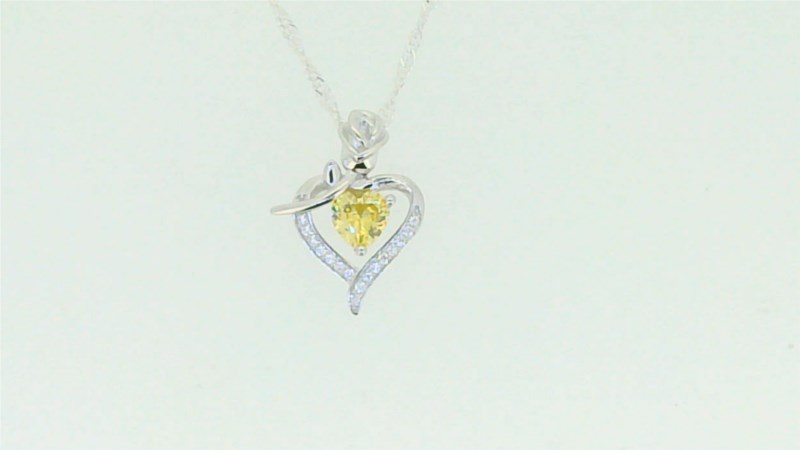 5MM Heart Shaped Sim. Birthstone w/Cubic Zirconia Heart & Rose Pendant with 18″ Chain Sterling Silver/15MM