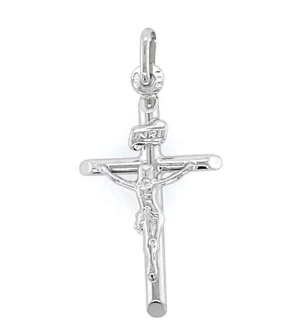 Tube Crucifix Flat Back Pendant Sterling Silver/30MM