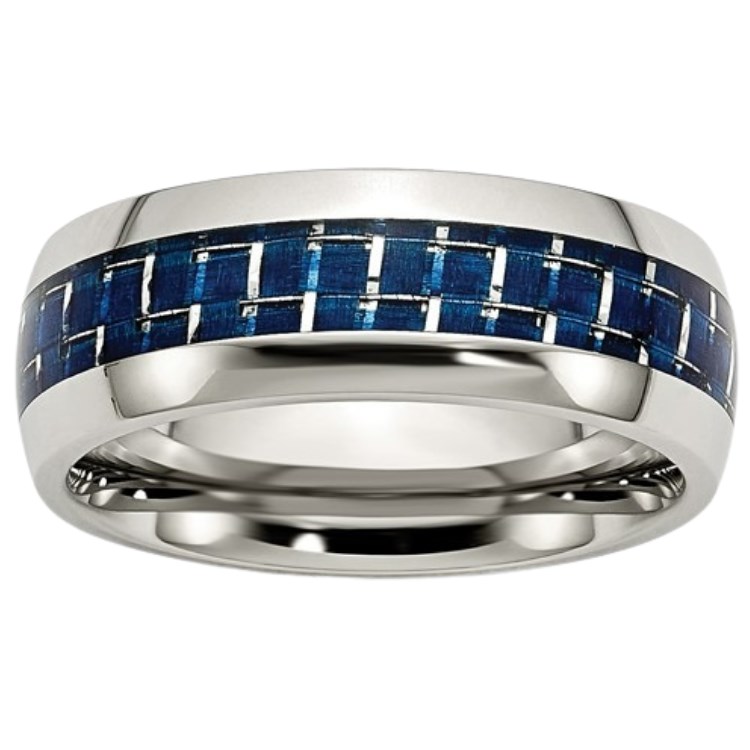 8MM Blue Carbon Fiber Inlay Wedding Band Stainless Steel/Size10
