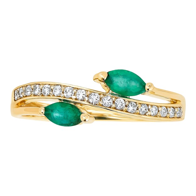 Genuine Emerald Marquise 5×2.5MM & .14TCW Diamond Crossover Ring 10KT