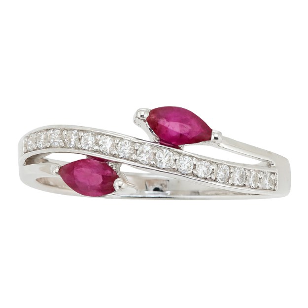 Genuine Ruby Marquise 5x2.5MM & .14TCW Diamond Bypass Ring 10KT WG quantity