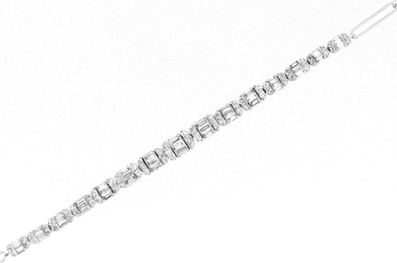 1.15TCW Diamond Round & Baguette Paper Clip Link 7.5″ Ladies Tennis Bracelet 10KT WG