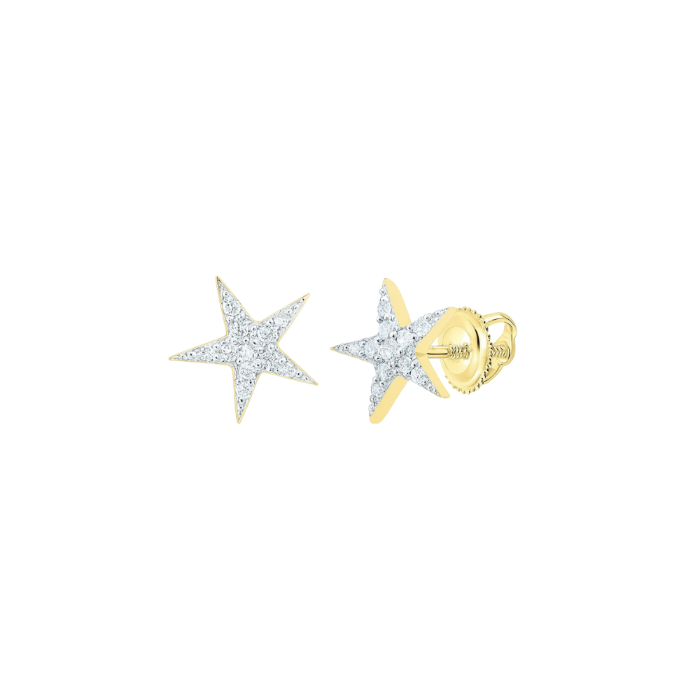 / .10TCW Diamond Star Screwback Stud Earrings Gold Plated Sterling Silver *FINAL SALE*