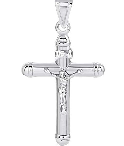 5MM Dome Tube Crucifix Pendant 10KT WG/42MM *SOLD AS IS-SLIGHT DENT-FINAL SALE* *CLEARANCE-FINAL SALE*