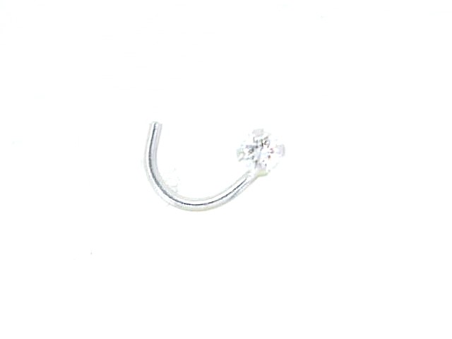2.5MM Cubic Zirconia Nose Stud Claw Set Pigtail 14KT WG *FINAL SALE*