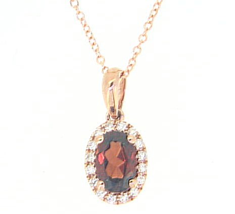 Genuine Garnet Oval 6×4 & Diamond Halo Pendant with Chain 10KT PK