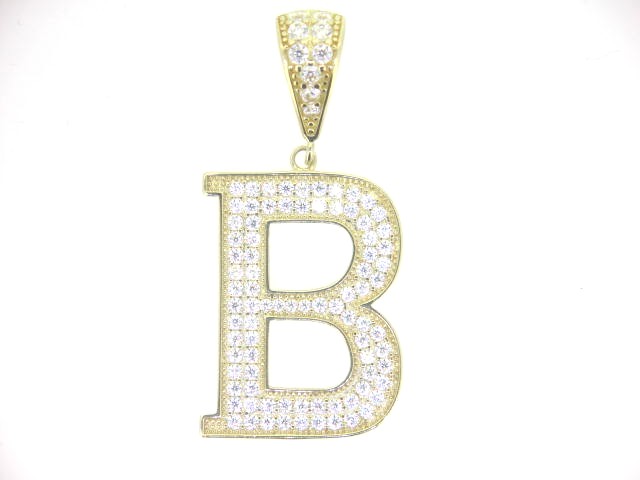 B Block Initial with Cubic Zirconia Pave Pendant 10KT/25MM