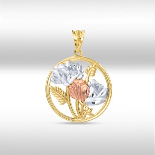 D.Cut Floral Round Framed Pendant 10KT TC/18MM