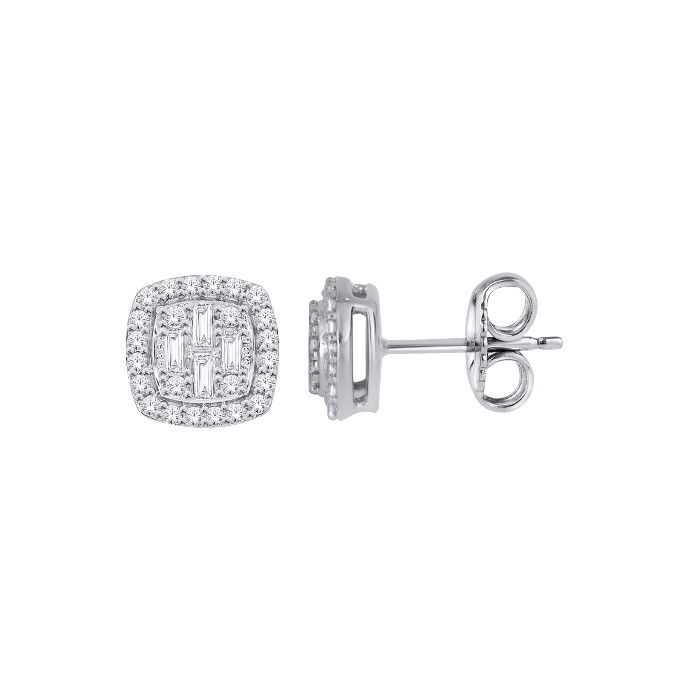 .50TCW Diamond Round Invisible Set Cluster Screwback Stud Earrings 10KT WG *FINAL SALE* quantity