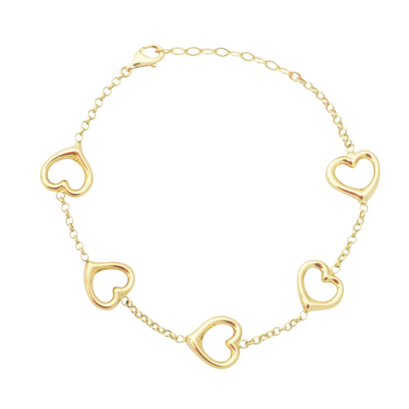 Open Puffed Heart x5 Station Link 7″ Bracelet 10KT/12MM