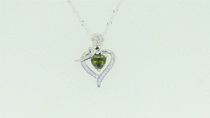 5MM Heart Shaped Sim. Birthstone w/Cubic Zirconia Heart & Rose Pendant with 18″ Chain Sterling Silver/15MM