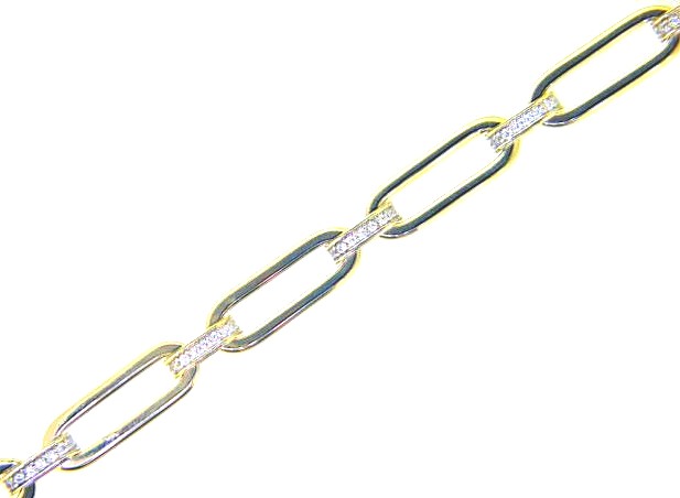 6MM Paper Clip Link with Cubic Zirconia 7″ Bracelet 10KT