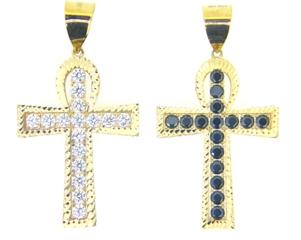 7MM D.Cut Cubic Zirconia Reversible Ankh Pendant 10KT/35MM *CLEARANCE-FINAL SALE*
