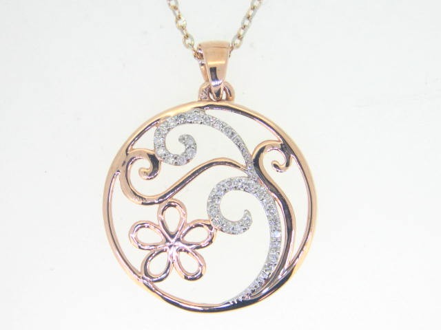 .12TCW Diamond Flower & Vine Round Pendant W/18″ Chain 10KT PK/19MM