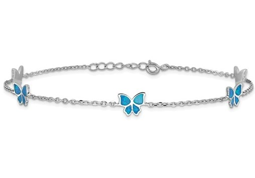 Sim. Opal Inlay Multi Butterfly Station Adjustable 9-9.5″ Anklet Sterling Silver