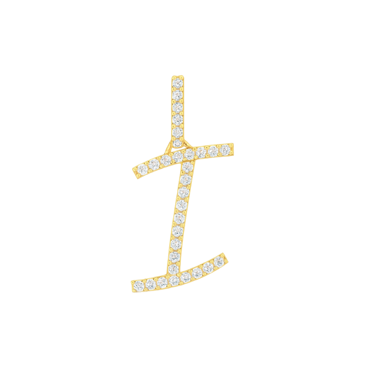 I Initial .12TCW Diamond Script Initial Pendant 10KT/12MM