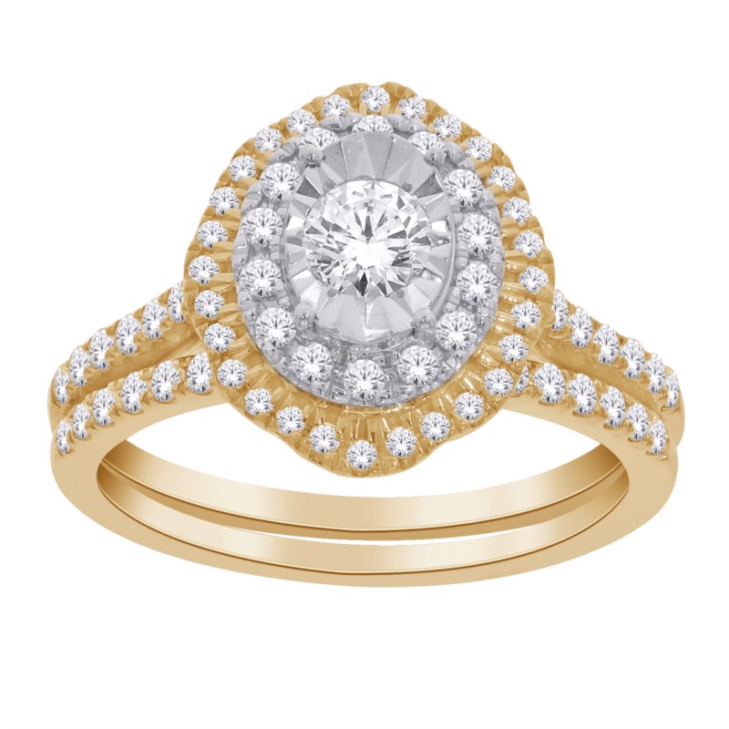 / .90TCW Diamond Scalloped Oval Shaped Double Halo w/ Accents Engagement Ring 10KT * BAND SOLD SEPARATLEY*