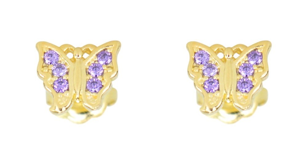 Purple Cubic Zirconia Butterfly Stud Baby Screwback Earrings 10KT *FINAL SALE*