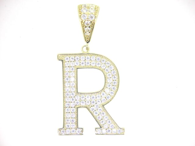 R Block Initial with Cubic Zirconia Pave Pendant 10KT/25MM