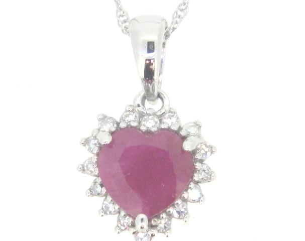 Genuine Ruby Heart & .05TCW Diamond Pendant with Chain 10KT WG **CLEARANCE-FINAL SALE**