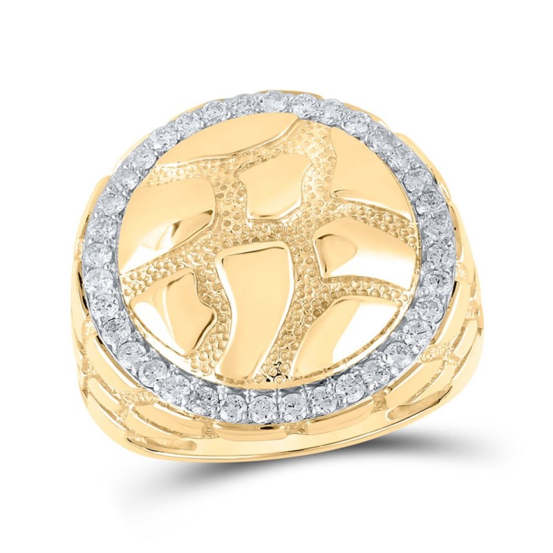 .75TCW Diamond Round Nugget Texture Gents Ring 10KT