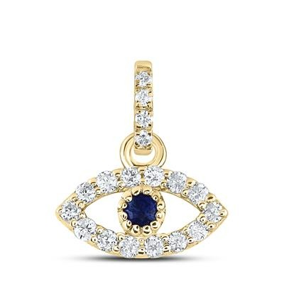/ .09TCW Diamond & Genuine Blue Sapphire Evil Eye Pendant with 18″ Chain 14KT