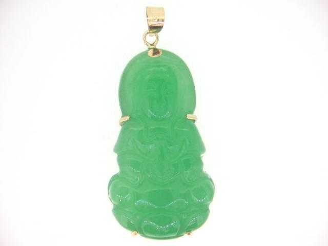 Genuine Jade Lady Buddha Pendant 14KT/30MM **Colour & Quality Enhanced**