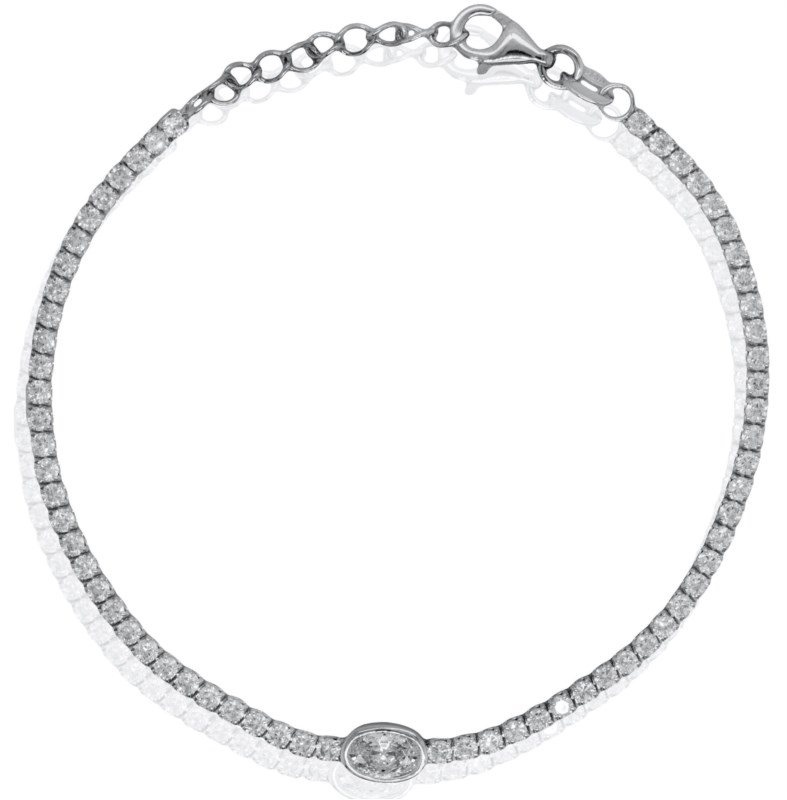 Oval Cut Bezel Set Centre Accent Cubic Zirconia Adjustable 7-7.5″ Tennis Bracelet Sterling Silver