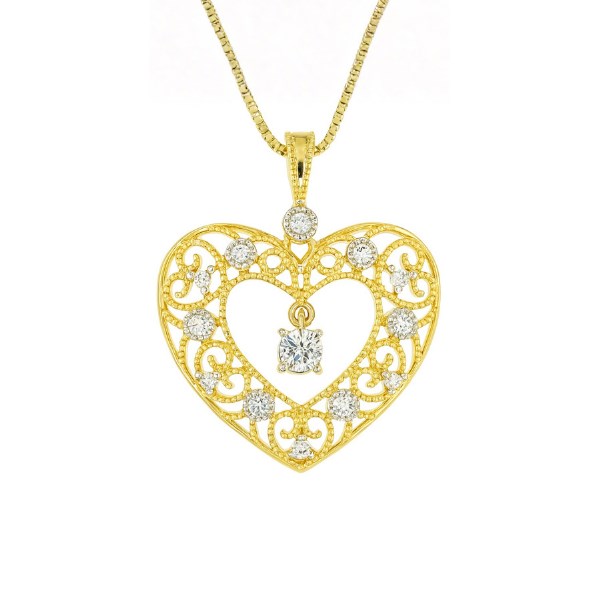 .12TCW Diamond Dancing Diamond Filigree Heart Pendant w/ 16″ Chain 10KT /17MM