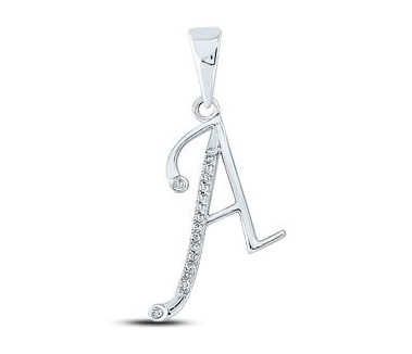 / A Initial .09TCW Diamond Script Initial Pendant 10KT WG/18MM *CLEARANCE-FINAL SALE*