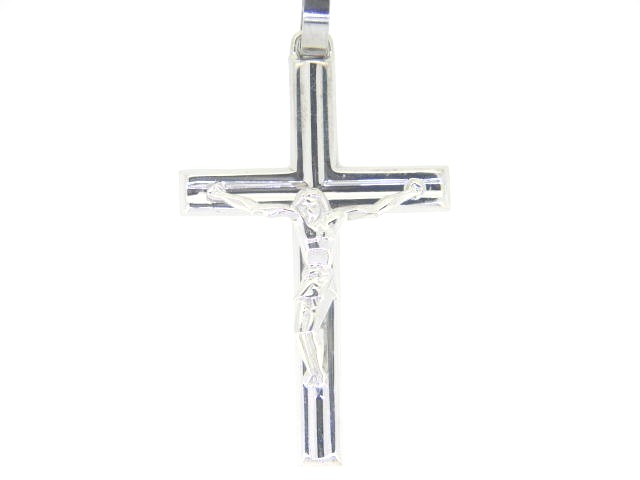 5MM Flat Tube Beveled Crucifix Pendant 10KT WG/45MM