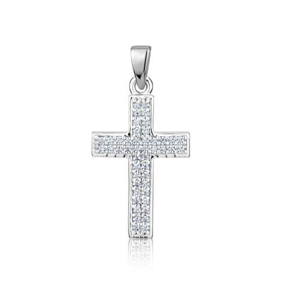 Cubic Zirconia Pave Flat Cross Pendant Sterling Silver/20MM