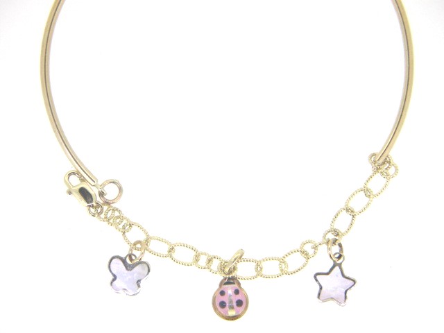 Bangle & Rolo Link Bracelet with 3 Dangle Charms 10KT/Adjustable *CLEARANCE-FINAL SALE*