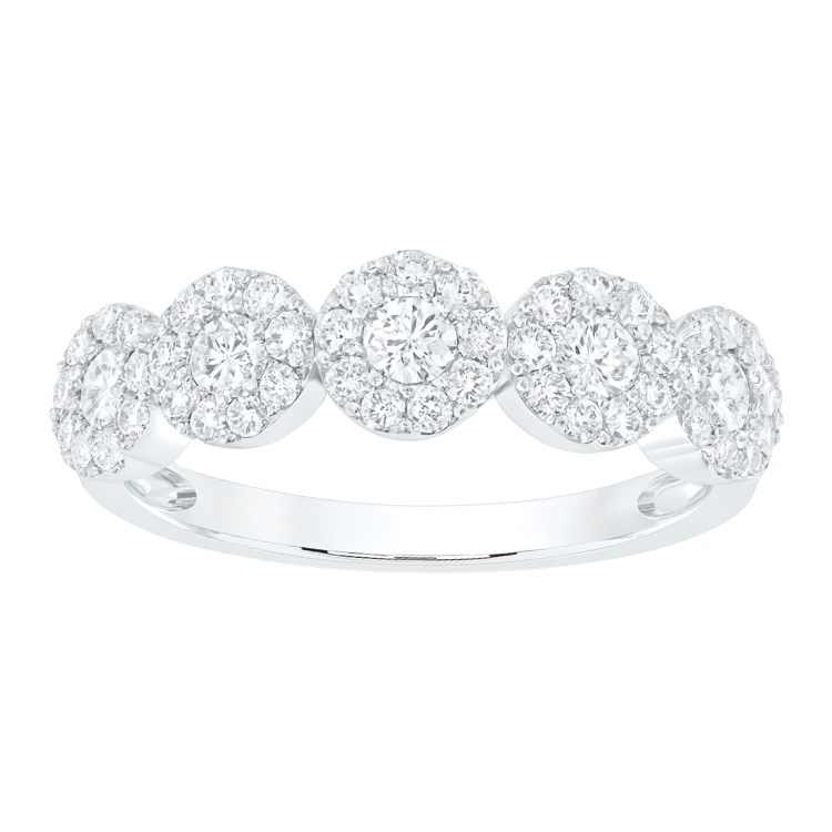 1.0TCW Diamond 5 Halo Anniversary Band 14KT WG