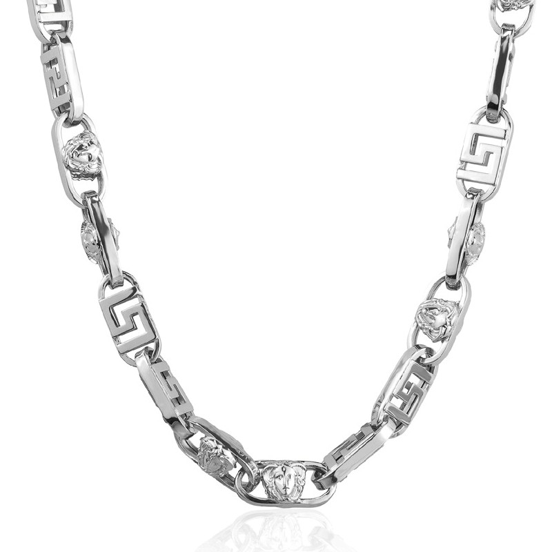 24″ Greek Key Design Fancy Link Chain Sterling Silver/10MM