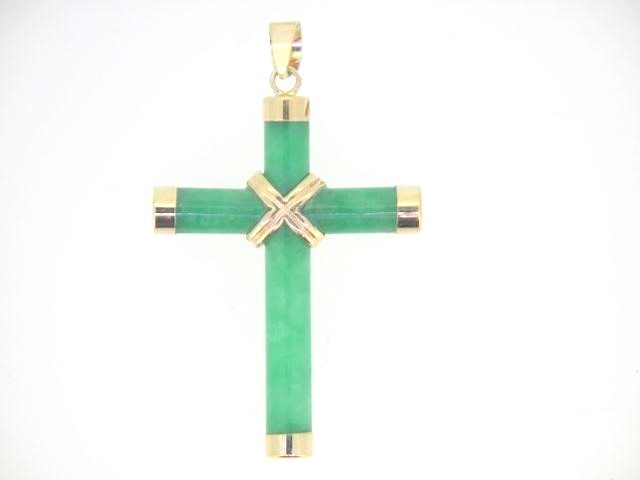 Genuine Jade 4MM Tube Cross Pendant 14KT/30MM **Colour & Quality Enhanced**