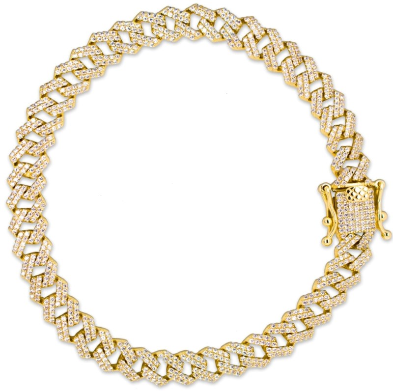Cubic Zirconia Micro Pave Square Edge Cuban Link 8″ Bracelet Gold Plated Sterling Silver/8MM