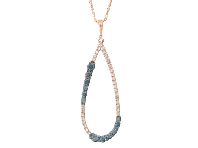 .50TCW Enhanced Blue & White Diamond Teardrop Pendant W/Chain 10KT PK **CLEARANCE-FINAL SALE**