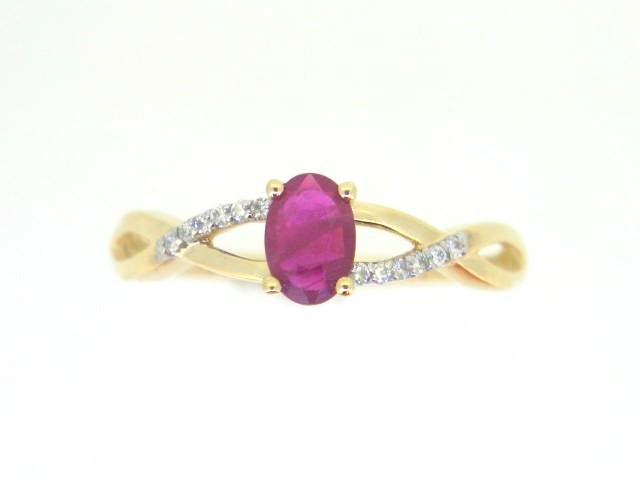 Genuine Ruby 6×4 & .05TCW Diamond Accented Infinity Design Ladies Ring 10KT